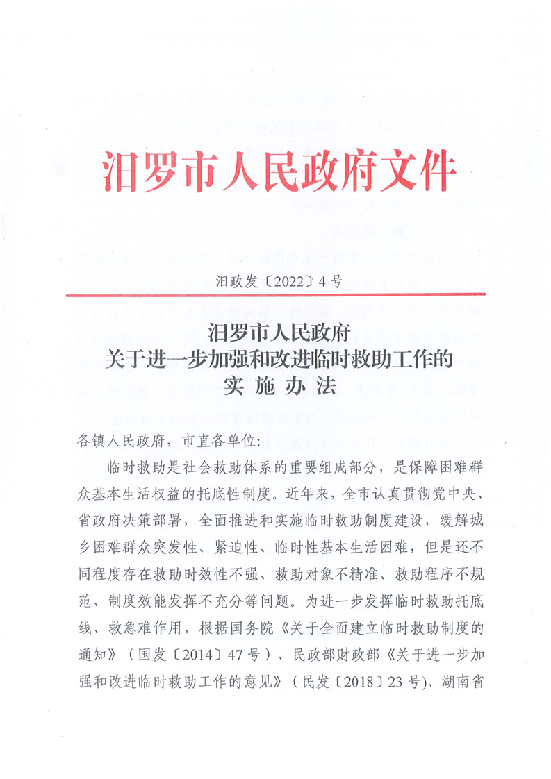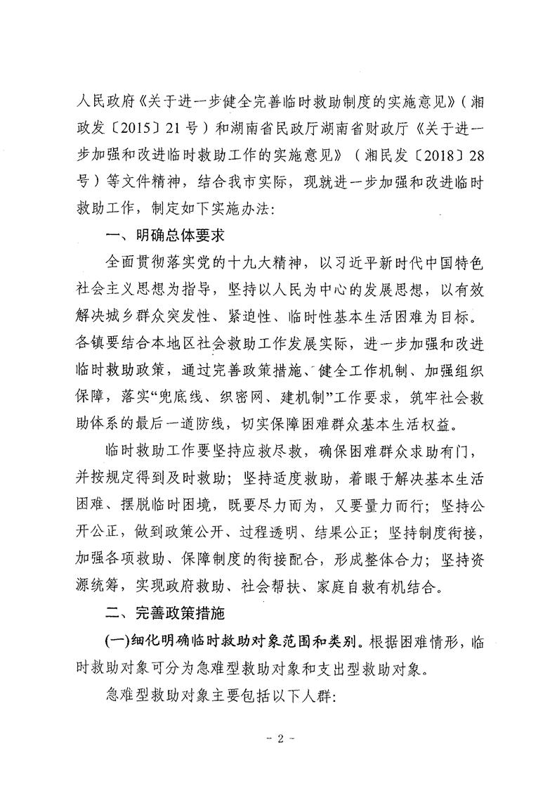 关于进一步加强和改进临时救助工作的实施办法