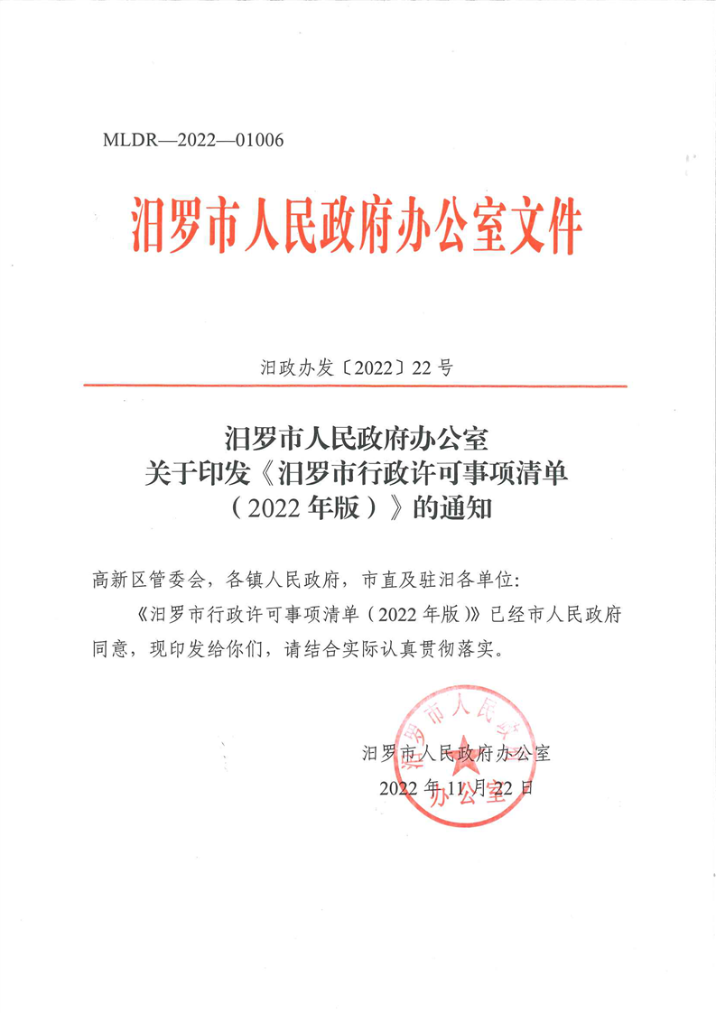 汨政办发〔2022〕22号 (附件.关于印发《365bet365娱乐_365bet注册送18_bet3365.com行政许可事项清单(2022年版)》的通知).xlsx