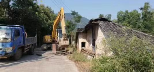 (图为弼时镇政府组织危房拆除现场)